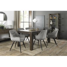 Bold, striking and with enormous character the Turin Dark Oak dining range will add an indulgently warm feel to any room. With rustic oak veneers set in solid American oak frames in a rich dark oiled finish Turin dining naturally embodies a casual and contemporary aesthetic. This relaxed yet stylish range offers plenty of versatility from a selection of table sizes to suit your space to the varied option of chair styles to fashion your look. Choose from low back upholstered chairs for that sleek and ultramodern look to the wide slatted back chair option that allows for a more intimate option. Turin is a perfect blend of simplicity and sophistication with cabinet pieces that boast sharply refined geometric shapes and offer both antiqued bronze and brushed nickel handles allowing you to refresh the look whenever you want! The use of superior Blum soft close runners affirms the attention to detail in defining this range's modern appeal.