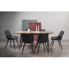 Taking inspiration from sophisticated mid-century styling through hints of both retro and Scandinavian design, Vintage is a fashionable range that features a varied blend of shapes and forms. Contrasting wire brushed weathered oak tops and carcasses with peppercorn painted base and legs are perfectly paired with a choice of upholstered chair styles in either a dark grey mottled fabric or an aged vintage bonded leather. Striking feature handles, engineered mitre joints, finely tapered legs, reciprocal extension runners and super comfortable casual chairs and stools made using moulded plywood shells with layers of foam encased in a ribbed look upholstery attest to the expert craftsmanship that underpins this collection. The natural shapes of the tables and radiused frames of the casual chairs and stools work with the geometrical and linear cabinet pieces to create a compelling and slightly eclectic blend. Vintage Dining boasts the perfect combination of inspired design with beauty and simplicity matched with craftsmanship, comfort and functionality.