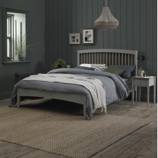 A timeless Scandinavian inspired bedroom range with clean lines and radiused frames, Whitby boasts a striking contrast of fresh and contemporary pale finish on oak with a mid-tone grey pigment. Design features include beautiful tapering spindles set within the arched top rail of the headboard with soft, elliptical shaped frames on the cabinet encasing gently bowed drawers with groove detailing which are finally completed with delicate turned handles. Whitby draws from past inspiration to offer a calm and casual aesthetic to any bedroom.